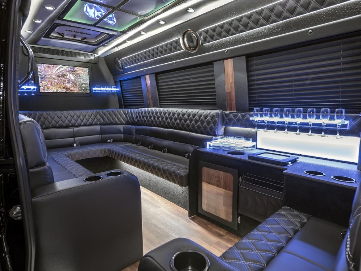 A Prom, Bachelor or Bachelorette party is not a party without a Limo Sprinter. 2 TV's, Standing Room, Full Bar, 14 Pax.